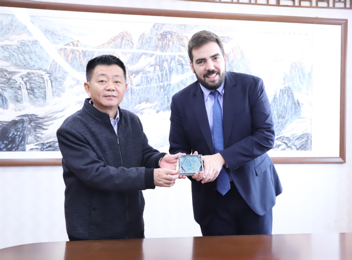 歡迎儀式上,魏勇代表學(xué)院對Albert Cebria一行的到來表示熱烈歡迎,并介紹了學(xué)院辦學(xué)情況、特色專業(yè)、國際合作與交流以及取得成果。Albert Cebria對學(xué)院的熱情接待表示感謝,介紹了西班牙胡安卡洛斯國王大學(xué)CEDEU學(xué)院的發(fā)展歷史、學(xué)校規(guī)模、專業(yè)設(shè)置以及目前與中國高校開展交流合作等情況。雙方一致表示,將以此次交流為契機(jī),建立友好校際關(guān)系,推動(dòng)兩校共同發(fā)展。