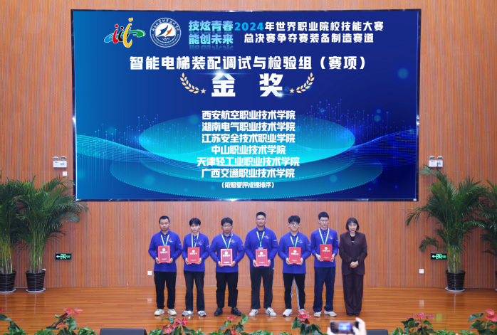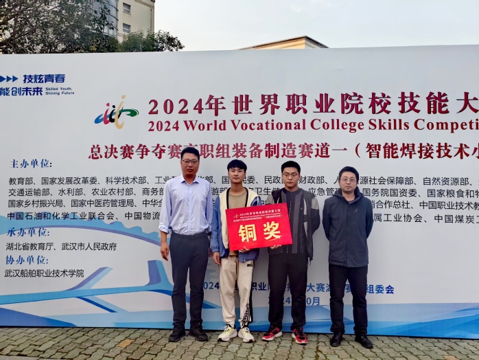 10月30日,2024年世界職業院校技能大賽總決賽高職組裝備制造賽道,智能電梯裝配調試與檢驗賽項爭奪賽在西安航空職業技術學院圓滿閉幕。我校智能制造與應急裝備學院張旭濤、信敬科兩位老師指導的學生郭其昊、朱振宇、王夢超參賽隊,憑借扎實的專業技能和出色的現場發揮,經過激烈比拼,斬獲金獎,實現學院歷史上的新突破。前一日,智能焊接技術爭奪賽在武漢船舶職業技術學院圓滿閉幕,我校智能制造與應急裝備學院王亞、張波兩位老師指導的學生馮兆海、孫家樂組成的參賽隊獲得銅獎。