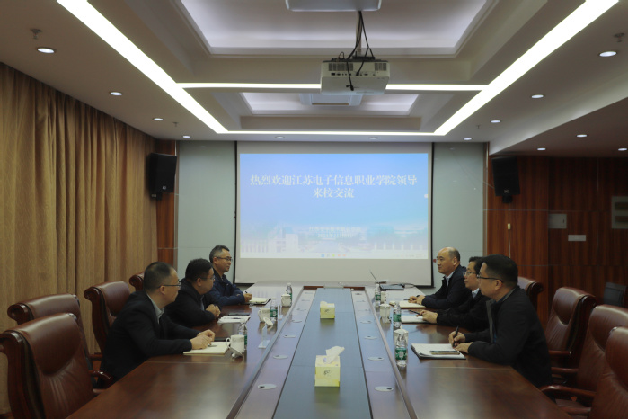 吉智代表學(xué)校對(duì)劉東風(fēng)一行的到訪表示熱烈歡迎,并介紹了我校的辦學(xué)歷史與發(fā)展現(xiàn)狀。劉東風(fēng)介紹了江蘇電子信息職業(yè)技術(shù)學(xué)院基本情況,提出了本次交流的主要目的,同時(shí)對(duì)我校近年來(lái)高水平賽事取得成績(jī)表示高度贊賞,并表示將以本次教學(xué)能力大賽合作為契機(jī),雙方持續(xù)加強(qiáng)交流與合作。