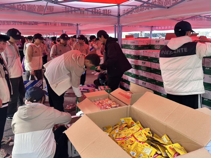 為充分做好本次志愿服務工作,校團委積極組織召開協調會開展志愿者招募與選拔工作,并分別于11月11日和11月13日組織全體志愿者開展通識培訓、骨干培訓、安保安檢專業技能培訓,開展崗位實操演練。11月15日,60位志愿者在組委會的安排下進行完賽包物資分裝保障工作,志愿者們明確分工,高效配合,將食品、獎品、紀念品等統一進行搬運和分裝,有條不紊,每個細節精準把握。