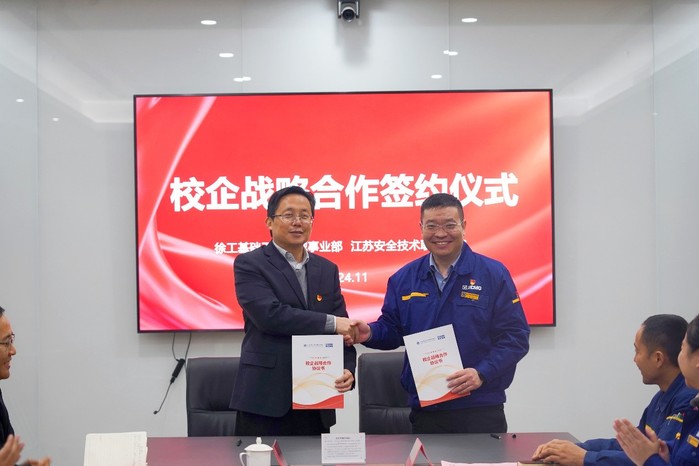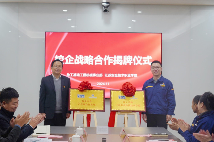 11月29日,智能制造與應急裝備學院黨總支與徐工基礎工程機械有限公司黨支部簽訂共建協議,建立戰略合作關系。學校副校長吉智,徐工基礎黨委副書記、紀委書記李紅飛出席活動。我校智能制造與應急裝備學院班子成員、骨干教師及徐工基礎黨政工作部、人力資源部、制造綜合部的領導和骨干員工參加會議。
