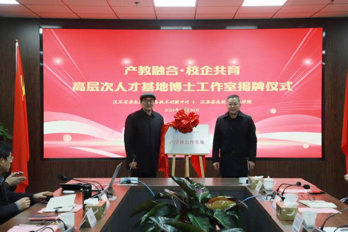 12月30日,我校與江蘇省安全應急裝備技術創新中心共建博士工作室揭牌儀式在徐州高新區安全科技產業園舉行。江蘇省安全應急裝備技術創新中心主任施衛祖,銅山區副區長、江蘇省安全應急裝備技術創新中心副主任吳健波,徐州高新區安科園管委會主任王佳川,江蘇省安全應急裝備技術創新中心副主任翟明華;我校黨委書記張東良,黨委委員、組織部部長佟廷友出席會議。我校工業安全與職業健康學院相關負責同志、博士教師代表參加會議。