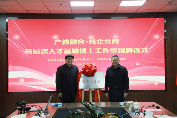 張東良代表學校對江蘇省安全應急裝備技術創新中心和參加揭牌儀式的各位領導表示衷心感謝。他指出,學校作為專注于安全應急領域的職業院校,始終致力于打造安全特色品牌,構建高質量安全應急人才培養高地。此次與江蘇省安全應急裝備技術創新中心共建“博士工作室”,不僅為我校博士學歷教師提供安全應急領域前沿科學研究和技術創新的科研平臺和實踐基地,也有利于促進雙方在人才培養、科研攻關、成果轉化等方面的深度合作,更好推動區域安全應急產業的創新發展。