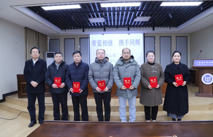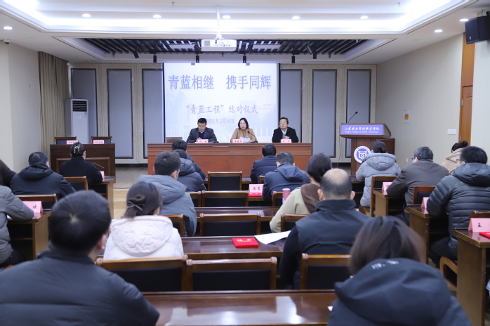 2月14日,我校在云龍校區(qū)舉行“青藍(lán)工程”師徒結(jié)對(duì)儀式。校長(zhǎng)李桂萍、副校長(zhǎng)吉智出席儀式,新教師和相關(guān)指導(dǎo)教師參加儀式。