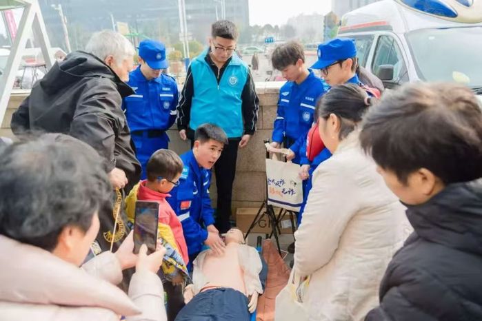 在活動現(xiàn)場,我校青年志愿者們充分發(fā)揮專業(yè)優(yōu)勢,利用人體模型為市民們演示了心肺復(fù)蘇術(shù)和海姆立克急救法,詳細(xì)講解了胸外按壓深度、按壓頻率以及針對不同群體的海姆立克急救法操作方法等關(guān)鍵要點(diǎn)。同時,志愿者們還通過互動問答、實(shí)操演練等形式,指導(dǎo)市民們進(jìn)行實(shí)際操作,讓他們親身體驗(yàn)掌握急救技能的重要性。