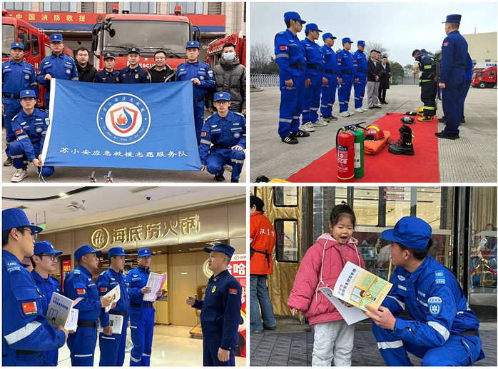 工業(yè)安全與職業(yè)健康學院“蘇小安”應急救援志愿服務隊攜手徐州市云龍區(qū)消防救援大隊,共同開展雷鋒月志愿服務活動。隊員們來到消防救援大隊,了解消防器材的使用方法和維護保養(yǎng)知識以及不同消防車輛的救援功能。隊員和消防員們共同走進萬達廣場,為部分商家工作人員展示滅火器的使用方法及以突發(fā)事件應對的自救、急救方式方法。現(xiàn)場,服務隊隊員們還為小朋友們發(fā)放了消防安全教育手冊。