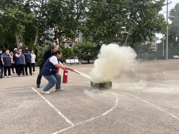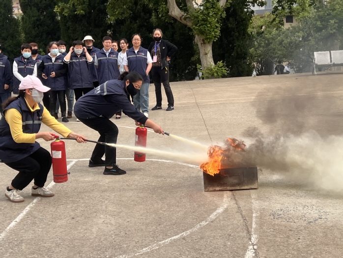 演練前,安保處就消火栓的具體使用方法、干粉滅火器日常檢查和使用要點,以及火災(zāi)發(fā)生應(yīng)對方法等做了詳細深入的講解。全體參訓人員依次進行消防栓滅火演練和滅火器滅火演練。