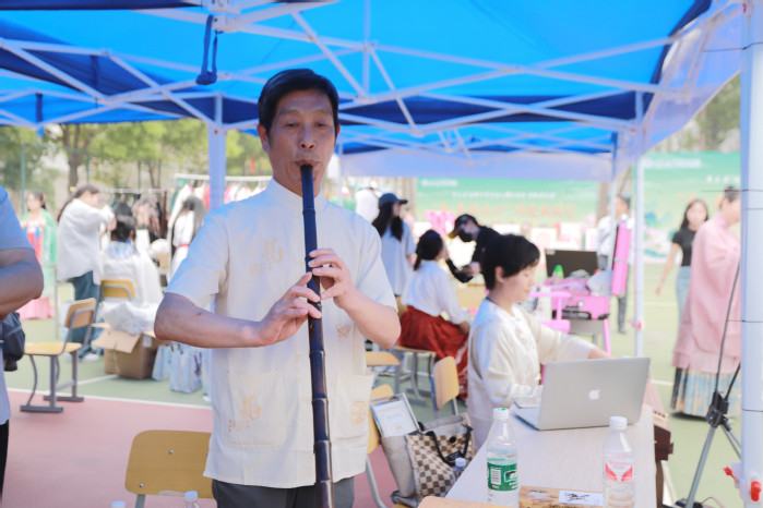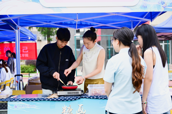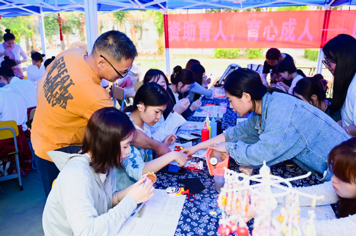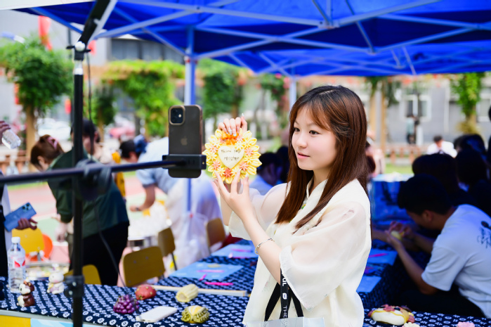 本次非遺校園行活動(dòng)邀請(qǐng)徐杰等非遺技藝傳承人走進(jìn)校園,現(xiàn)場(chǎng)共設(shè)非遺手工體驗(yàn)區(qū)、傳統(tǒng)文化體驗(yàn)區(qū)、非遺作品展覽等三大區(qū)域。活動(dòng)現(xiàn)場(chǎng),熱鬧非凡。在非遺手工體驗(yàn)區(qū),制作糖人的攤位前,色澤金黃、焦香溫?zé)岬柠溠刻窍〗?jīng)過(guò)手指靈活地捏、搓、按,轉(zhuǎn)瞬之間,一個(gè)個(gè)栩栩如生的糖人造型便誕生了;一把剪刀,一張紅紙,在非遺匠人和學(xué)生紅紙銀剪翻飛的過(guò)程中,一幅幅生動(dòng)的畫面和細(xì)膩的紋路讓靈感與想象充分“躍然紙上”。在傳統(tǒng)文化體驗(yàn)區(qū)漢服試穿拍照打卡、射御禮樂(lè)書數(shù)、舞彩帶龍、繪畫書法等多項(xiàng)體驗(yàn)吸引了廣大師生的熱情參與。
