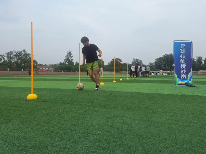 近期已經開展的趣味運動會、籃球、足球項目逐漸引發學生廣泛關注和積極體驗。如趣味運動會中的“筷子夾乒乓球”、“跳大繩”等活動頗受歡迎,現場氣氛熱烈;籃球投籃和運球比賽則包含著技術、勇氣、體力和信心,參賽學生沉著應對、相互鼓勵,并在賽后交流經驗,分享成功的喜悅;足球繞桿射門、踢準比賽同樣精彩,參賽學生憑借細膩的技術、敏銳的反應、精湛的腳法向大家呈現一場精彩的足球盛宴。這些比賽項目不僅是技術的展現,更是我校學生堅韌不拔、積極進取意志力的生動注腳。同學們在比賽中盡情享受運動所帶來的樂趣,讓青春的汗水灑在校園的賽場。