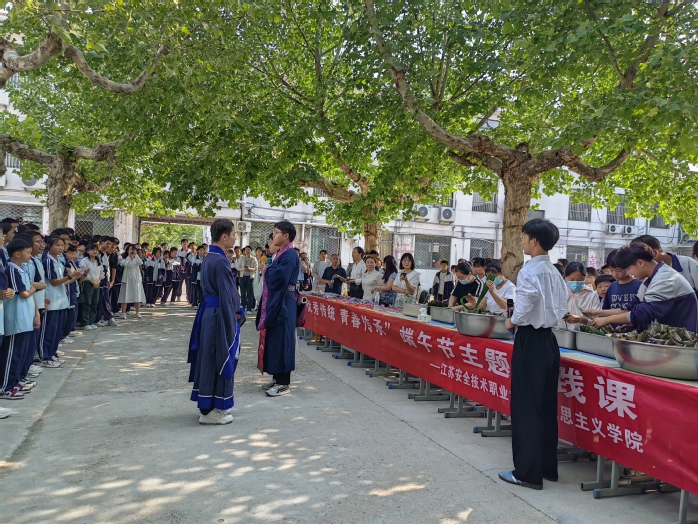 活動最后,還開展了“優秀傳統 青春傳承”端午節主題活動,通過“跨越千年敬屈原”思政情景劇、“文化徐州·端午習俗”五色彩線縫香包、“文化潤心·書香青春”中華優秀傳統文化書籍贈送活動,將紅色文化和地方文化有機統一起來,激發學生厚植家國情懷。
