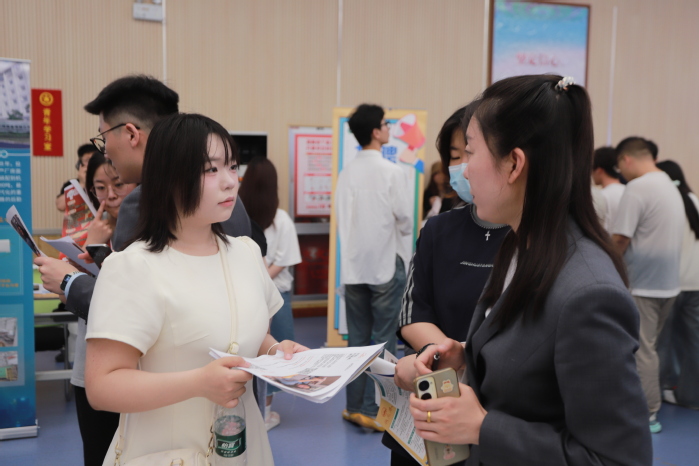 招聘現場,用人單位向同學們展示企業優勢,積極宣傳推介。應聘學生認真閱讀招聘簡章,投遞簡歷,主動與招聘人員互動,了解企業情況與崗位要求,表現出良好的精神風貌和求職熱情。