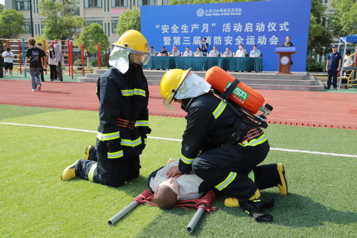 為深入貫徹落實習(xí)近平總書記關(guān)于安全生產(chǎn)的重要論述,引領(lǐng)全校師生聚焦“人人講安全、個個會應(yīng)急——查找身邊安全隱患”主題,全面提升師生安全素養(yǎng),強化安全技能育人實效,6月11日,我校在云龍校區(qū)舉行“安全生產(chǎn)月”活動啟動儀式暨第三屆消防安全運動會。學(xué)校黨委書記張東良、校長李桂萍、黨委副書記成伯君、副校長任國興,云龍區(qū)消防救援大隊指導(dǎo)員紀祥坤,安全保衛(wèi)處、學(xué)工處和工業(yè)安全與職業(yè)健康學(xué)院相關(guān)負責(zé)同志和比賽裁判員、運動員參加活動。