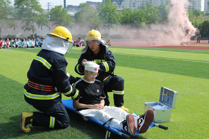 安全是發(fā)展的前提,技能是安全的保障。為充分展現(xiàn)我校“教、學(xué)、練、戰(zhàn)一體化”的安全育人成果,在消防救援實戰(zhàn)演習(xí)中,“蘇小安”應(yīng)急救援志愿服務(wù)隊的隊員們通過模擬火情警報、應(yīng)急疏散、傷員救援、火災(zāi)撲滅等場景,讓參加活動的師生在“沉浸式”體驗中掌握遇到火災(zāi)時應(yīng)具備“科學(xué)救援、專業(yè)處置”的專業(yè)知識與實戰(zhàn)能力。