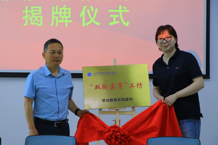 在與會嘉賓的共同見證下,成伯君與高思雨共同為“雙齡互育工坊”揭牌。