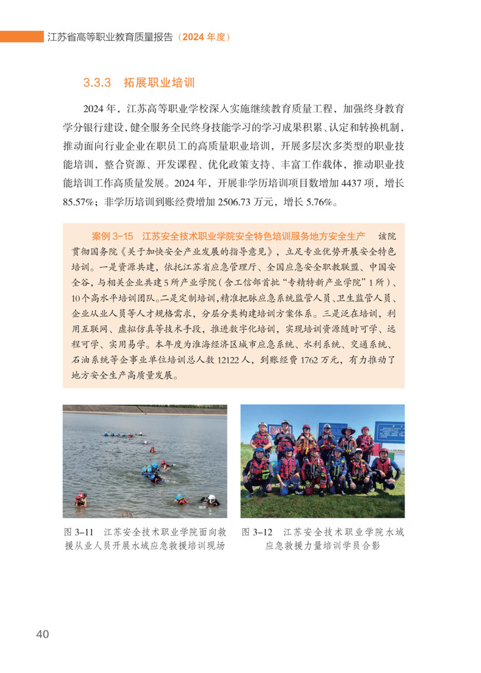 近日,《江蘇省高等職業(yè)教育質(zhì)量年度報告(2024年度)》正式發(fā)布。我校報送的典型案例《江蘇安全技術(shù)職業(yè)學(xué)院安全特色培訓(xùn)服務(wù)地方安全生產(chǎn)》成功入選,充分展現(xiàn)了近年來學(xué)校在安全特色社會服務(wù)方面取得的突出成績。