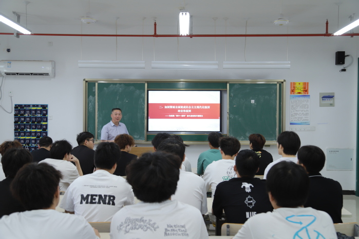 其他黨政領導成伯君、魏勇、任國興、朱偉軍、吉智面向各班級同學講授了堅持黨的全面領導、全面依法治國、全面從嚴治黨、建設社會主義生態文明等專題課程。各黨政領導精心備課,結合專業特色與學生思想實際,回應學生關切,將黨的創新理論講深、講透、講活,課堂氛圍熱烈,在青年學子中引發積極反響。