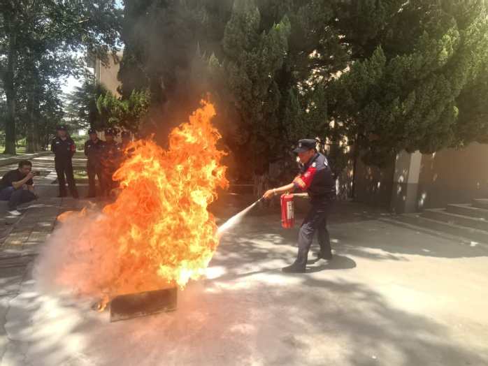 通過具體消防案例解析,學校消防干事對日常工作中如何發現和排除消防安全隱患,撲救初起火災和火災疏散逃生技巧、各類滅火器的使用方法方面等方面進行了消防安全知識培訓,并組織全體安保人員開展了滅火實操演練。