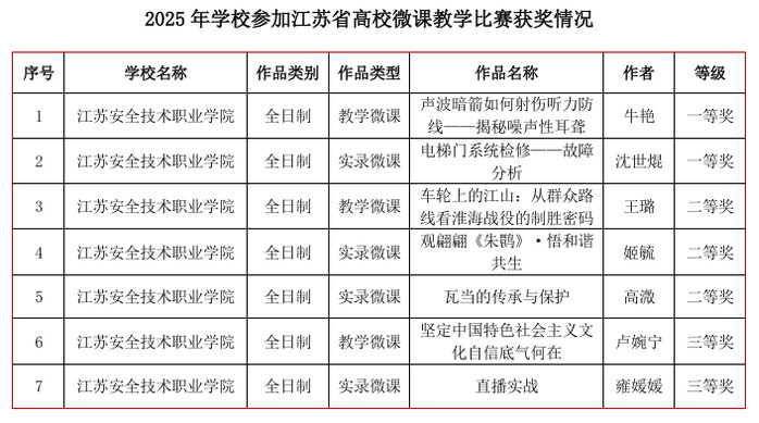 近日,2025年江蘇省高校微課教學(xué)比賽獲獎(jiǎng)名單公布,我校再獲佳績,共有7項(xiàng)作品獲獎(jiǎng),其中一等獎(jiǎng)2項(xiàng),二等獎(jiǎng)3項(xiàng),三等獎(jiǎng)2項(xiàng),成績位于全省前列。