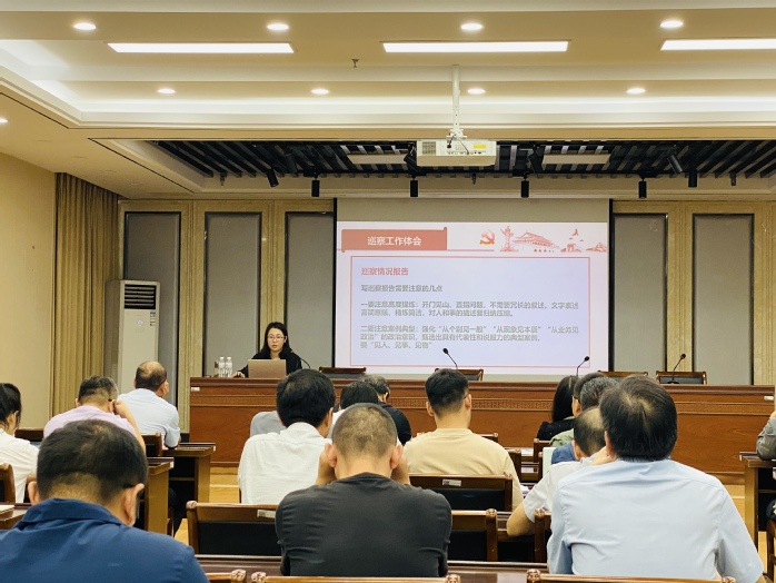 楊曉峰以“認真貫徹落實《中國共產黨巡視工作條例》推動內部巡察工作高質量發展”為題,圍繞深入學習貫徹習近平總書記重要講話和黨中央決策部署、全面貫徹《條例》精神等方面,緊密結合高校特點和巡察工作實踐,重點闡述了需要關注和把握的八個關鍵問題。講座運用大量案例進行深入解析,將政策法規融入具體情境,有效助力參訓人員進一步準確把握發現問題、分析研判和推動解決問題各環節的具體要求。