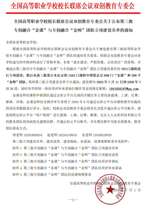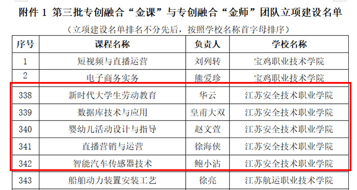 近日,全國高等職業學校校長聯席會議雙創教育專委會(以下簡稱“校聯會雙創教育專委會”)公布第三批專創融合“金課”與“金師”團隊立項建設名單,我校推薦申報的《智能汽車傳感器技術》等5門課程成功入選立項建設名單。