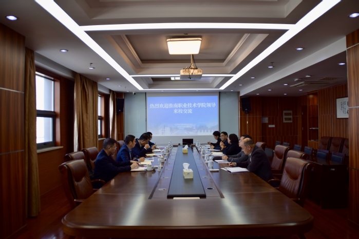 10月28日,淮南職業技術學院黨委書記、校長袁愛清,黨委委員、副校長凌總成,校長助理周波一行來校調研交流。校長李桂萍、副校長吉智,發展改革辦公室、教務處、工業安全與職業健康學院等相關部門負責同志參加活動。淮南職業技術學院教務處、能源工程學院負責人陪同調研。