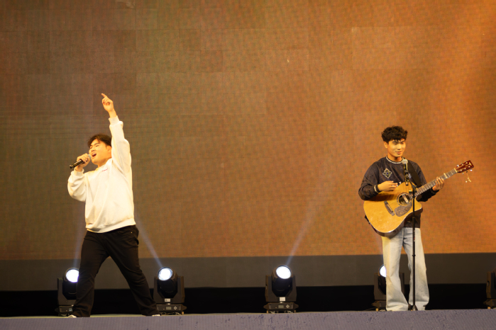 開場舞《花兒為什么這樣紅》以靈動舞姿抒發赤誠情懷,盡顯青春本色;云龍校區輔導員老師們帶來的《New Boy》活力滿格,用歡快旋律勾勒出師生同樂的溫馨畫卷;《花海》的浪漫悠揚、《Abracadabra》的動感熱辣輪番上演,迅速點燃現場氛圍;說唱《麒麟》搭配震撼噴火表演,炸裂舞臺點燃全場熱情;古風《蘭亭序》琴韻流轉、意境悠遠,盡顯東方美學的獨特韻味;獨舞《歸程》情感真摯飽滿,細膩演繹引發觀眾深度共鳴。