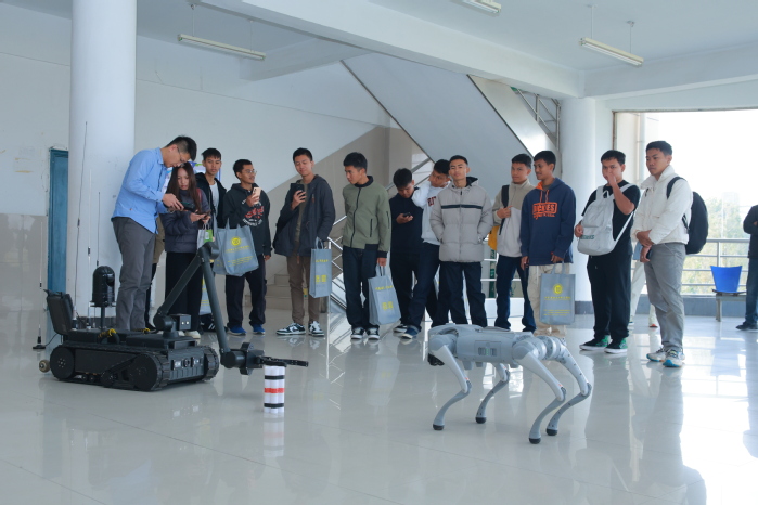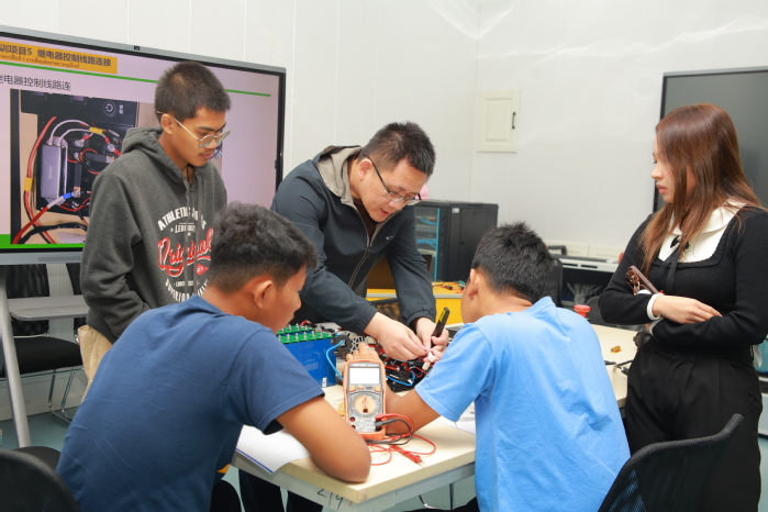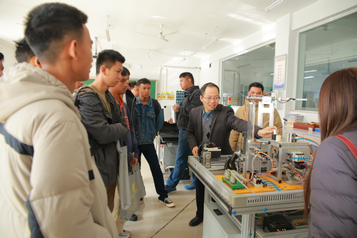 在校研學期間,泰國師生們學習了相關課程并參觀了我校兩校區的教學實訓場地。在智能制造與應急裝備學院,舉辦了中泰教師工作坊,雙方教師進行了座談,就機電、電梯等相關專業合作的具體問題進行了深入細致的研討。