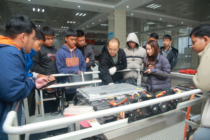 本次研學交流項目設計豐富,主要圍繞漢語學習、文化體驗和專業實操訓練展開,同時組織中泰學生汽車應急技能友誼賽、蘇安院文創作品推薦會等活動。泰國師生們穿漢服、學技能、做團扇、看美景、品文化、學舞龍,沉浸式體驗中華優秀傳統文化底蘊和蓬勃發展的現代化景象,深度了解了“中國制造”到“中國智造”的轉變和新能源汽車技術職業教育發展現狀,為他們未來投身新能源汽車行業奠定了堅實的基礎。