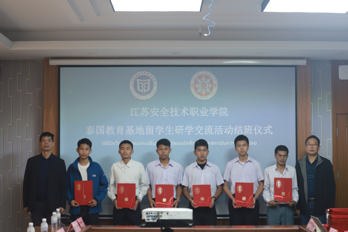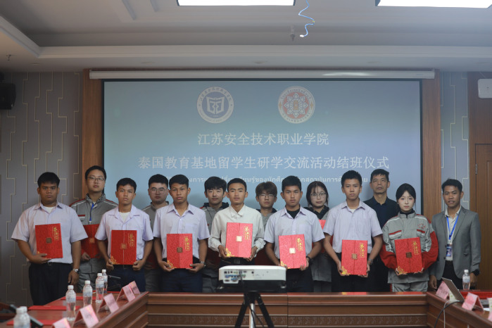 結班儀式上,副校長魏勇對本次活動的圓滿舉辦表示祝賀,并用豐富、珍惜、收獲三個關鍵詞進行了總結。他表示,本次研學活動為中泰青年學生搭建了學習交流平臺,增進了雙方的友誼和認同。他希望,泰方同學們能把在中國看到的感受到的帶回泰國,講好中國故事,架起友誼橋梁。泰國教師代表感謝我校給予本次交流機會,對我校先進的理念、設備和技術表示贊賞,并表示把雙方研討交流情況及時匯報加以落實,希望雙方持續加強合作多出成果。泰方學生代表感謝我校的熱情接待和親切關懷,他們表示,會珍惜寶貴的學習機會,本次系列活動,他們感受到了中國悠久的豐富文化,并與我校同學建立了珍貴的友誼,特別感謝老師提供的專業指導和實踐機會,回到泰國把學到的知識加以延伸應用。