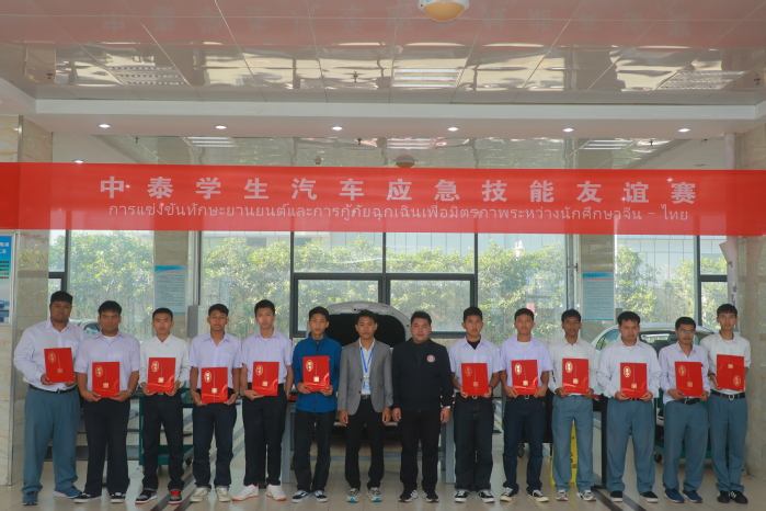 結班儀式上,除頒發結業證書外,還為“中泰學生汽車應急技能友誼賽”獲獎學生頒發了獲獎證書和獎品,并把泰國學生動手制作的團扇以及活動合影作為紀念禮物贈給他們。