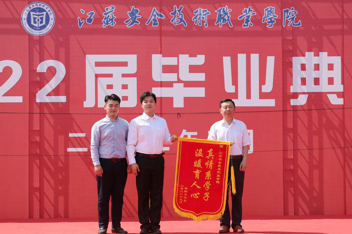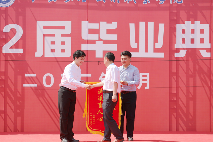 優(yōu)秀學(xué)生代表向?qū)W院贈送了“真情系學(xué)子,溫暖育人心”的錦旗,以表達對母校老師的培育和關(guān)愛之情,黨委副書記孫健身代表學(xué)院接過錦旗,并和學(xué)生親切交談。
